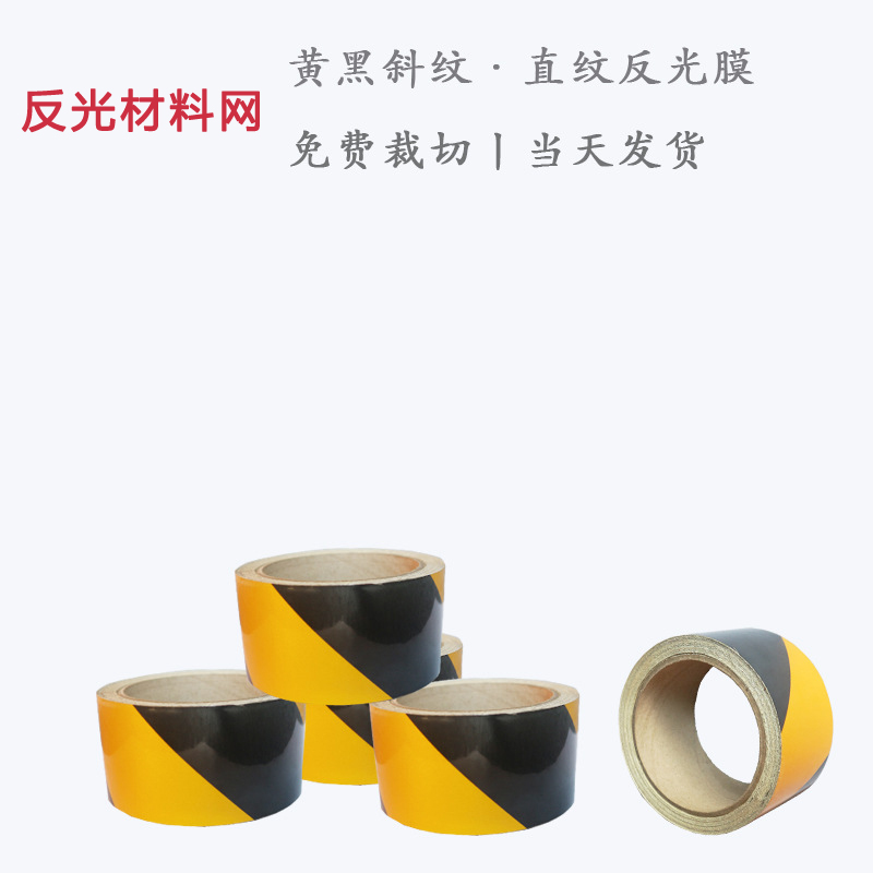 黃黑反光膜作用主要帶表為警示,警示行人或者車輛。廠房內通常也會粘貼黃黑反光膜膠帶以起到警示作用,一般粘貼在設備作業區以及貨物裝卸區等。所有的普通雙色反光膜在反光材料網購買均提供免費切卷服務。